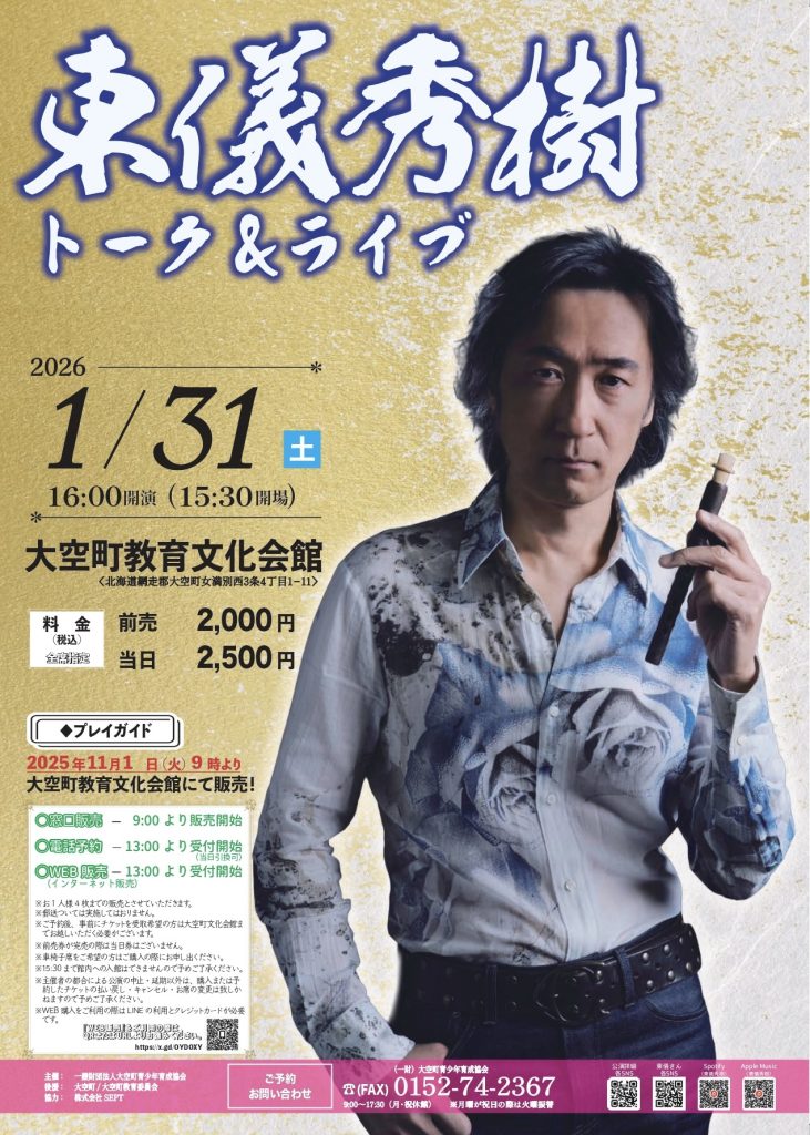 1/31(土) 東儀秀樹トーク&ライブ(北海道網走郡大空町) コンサートnew !