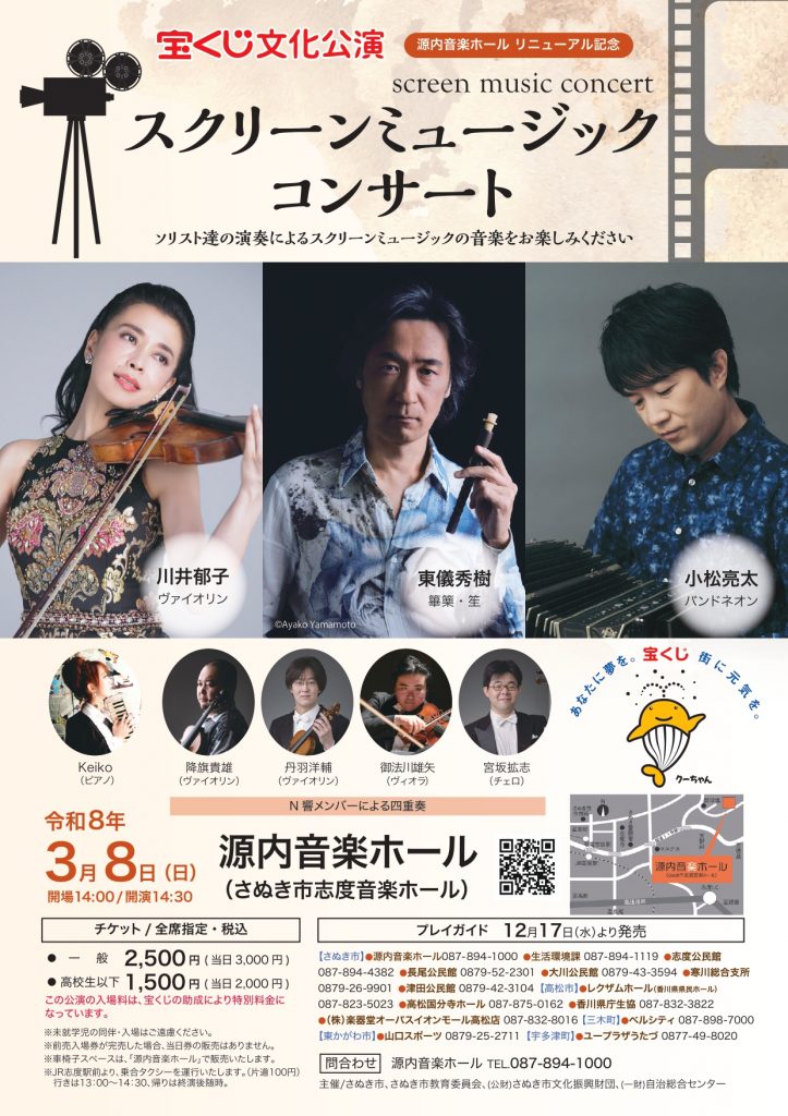 3/8(日) 宝くじ文化公演 スクリーンミュージックコンサート(香川県さぬき市) コンサートnew !