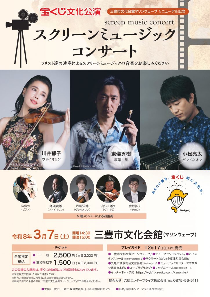 3/7(土) 宝くじ文化公演 スクリーンミュージックコンサート(香川県三豊市) コンサートnew !