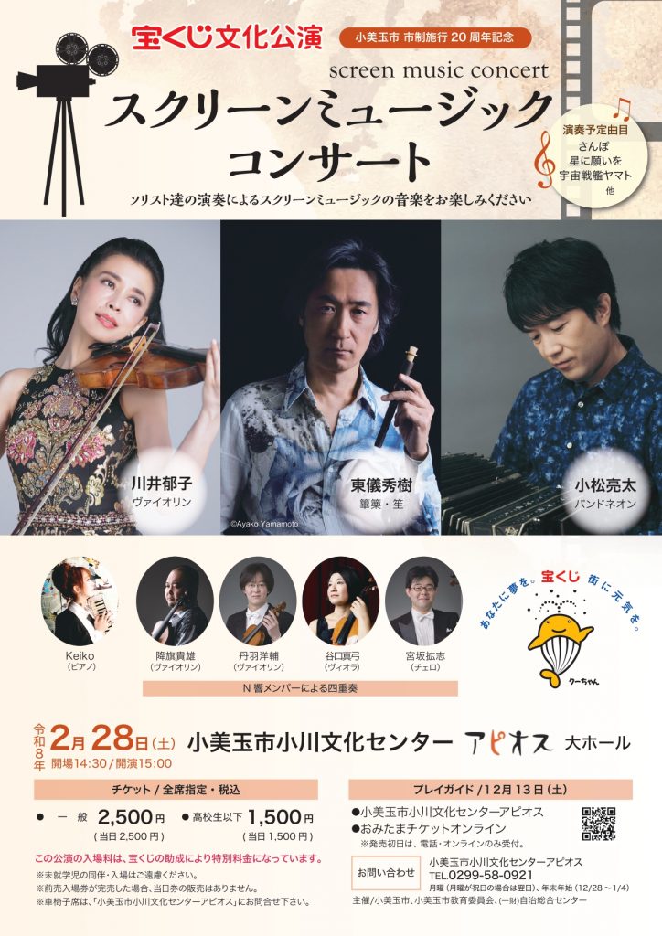 2/28(土) 宝くじ文化公演 スクリーンミュージックコンサート(茨城県小美玉市) コンサートnew !